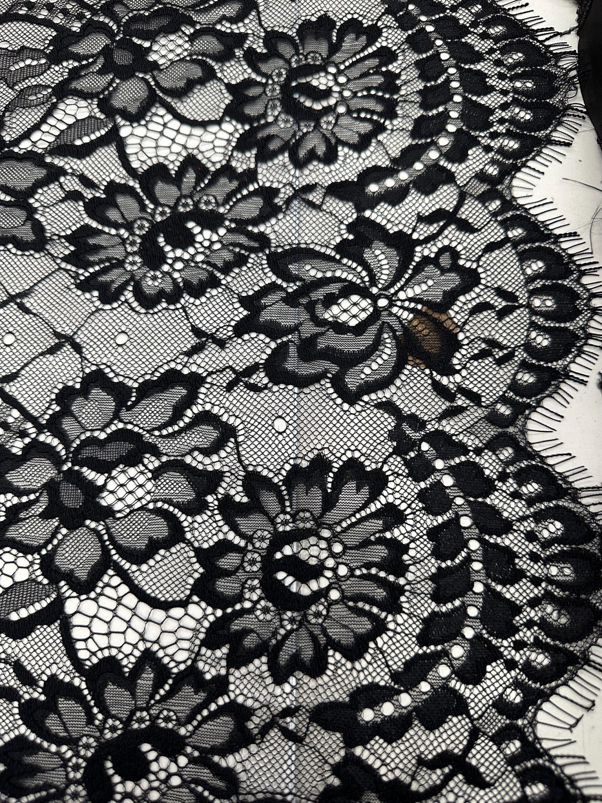 Ideal for overlays, evening gowns, lingerie, shawls, bridal pieces, and couture garments, this lace brings sophistication and delicate texture to your designs.