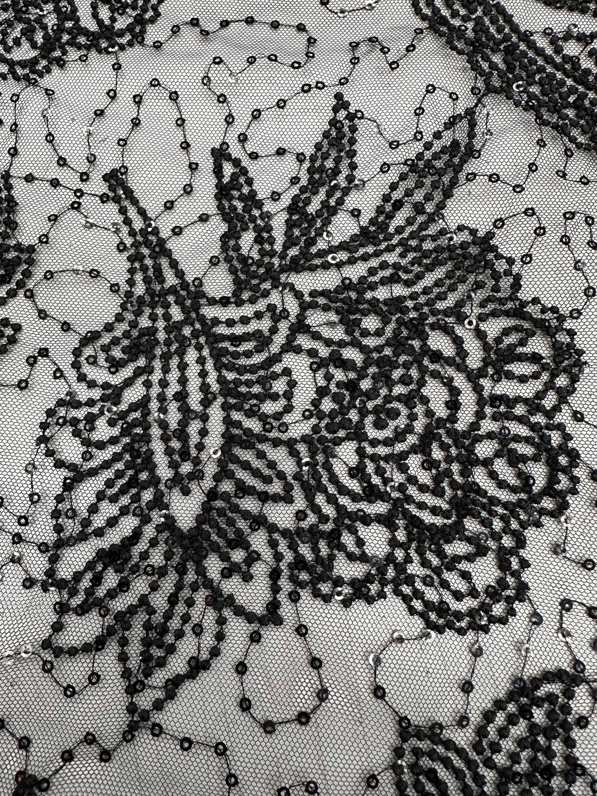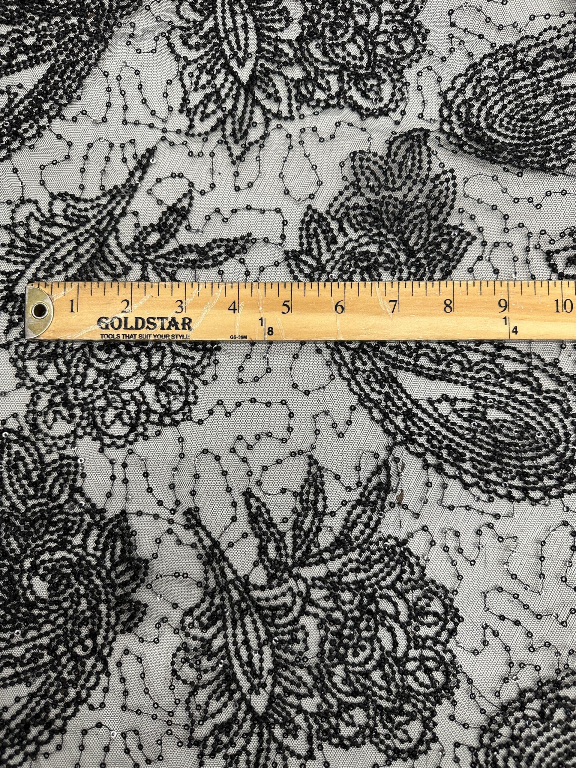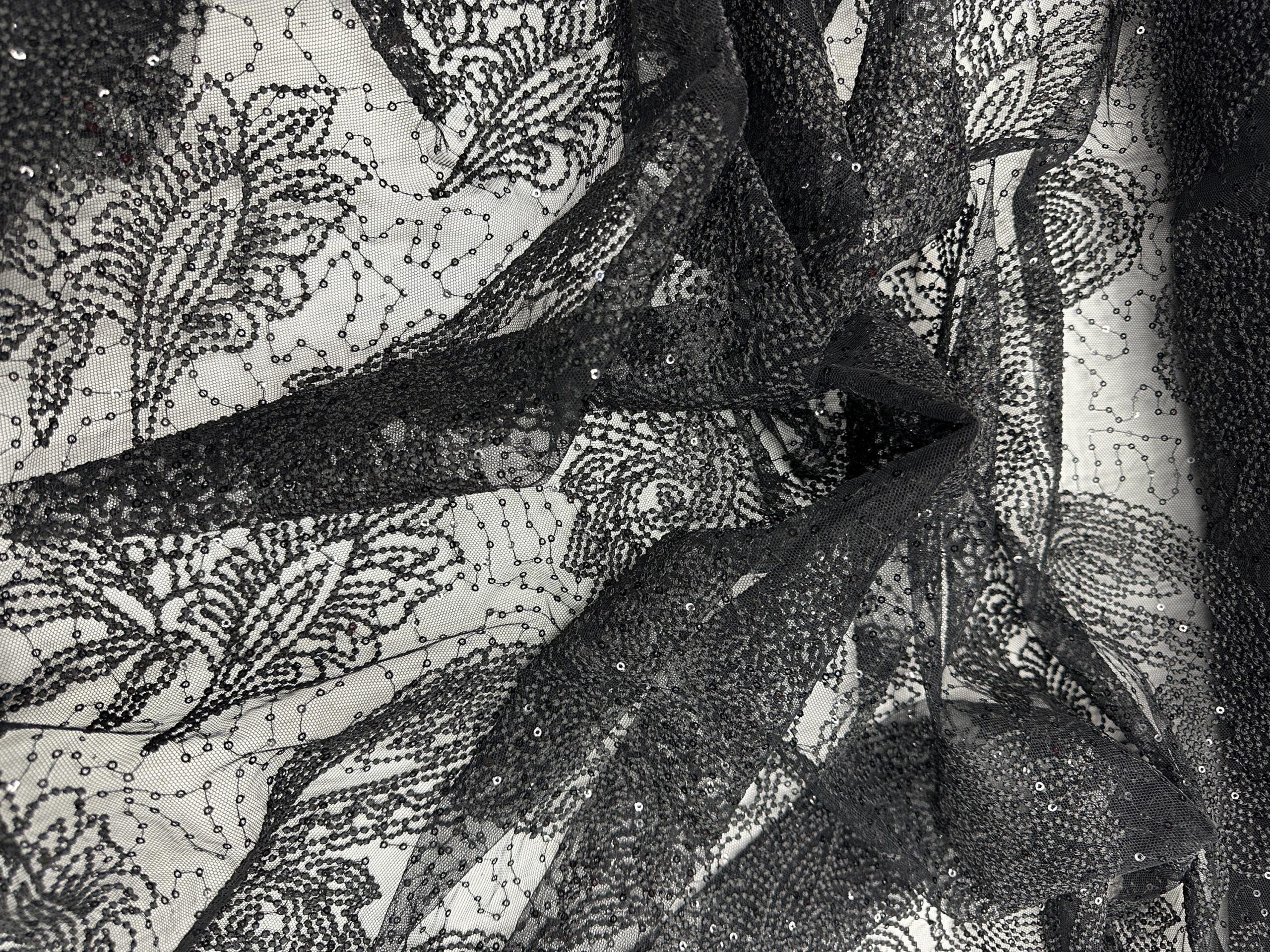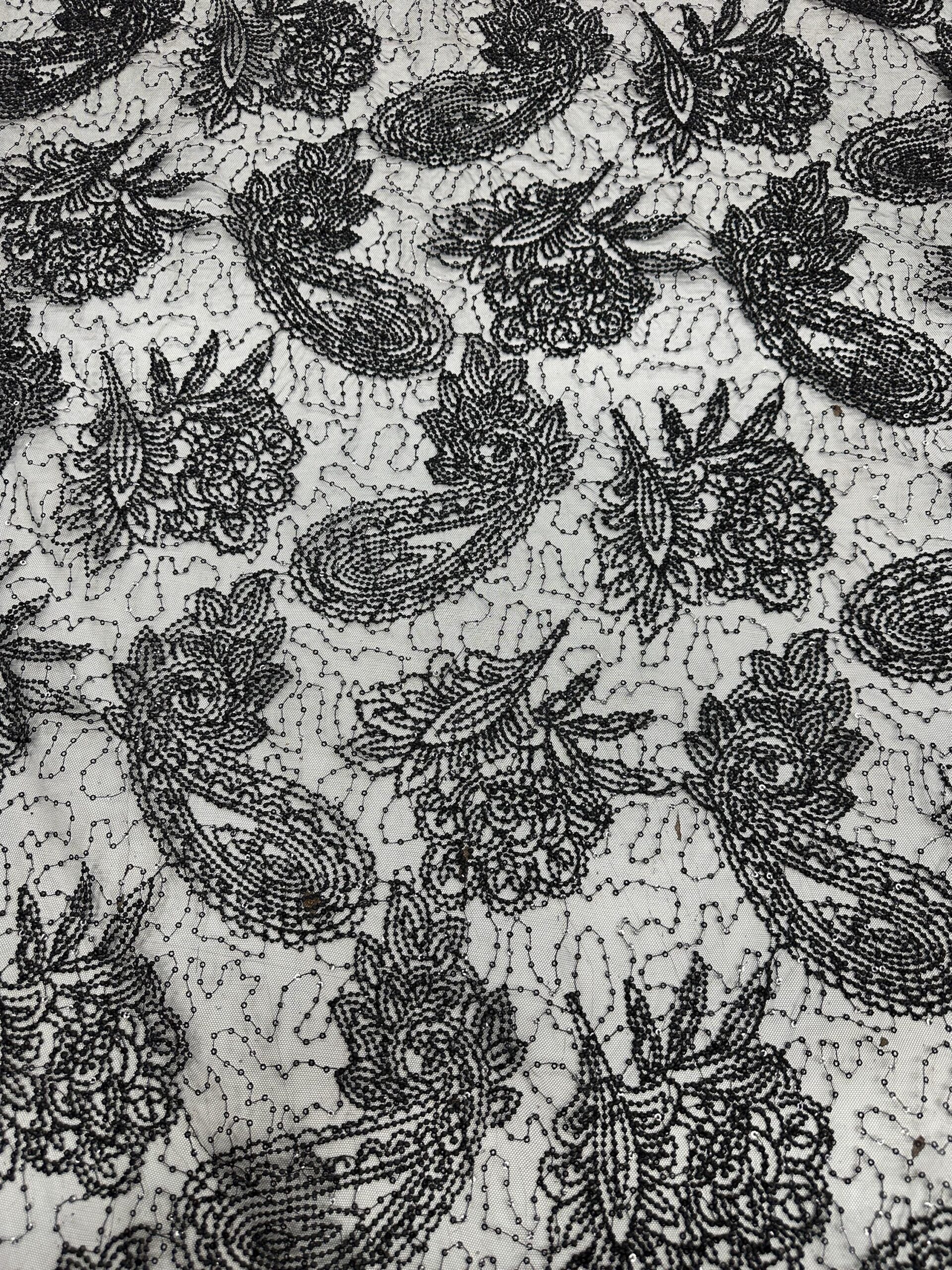 Black Embroidered Lace Fabric by the Yard | Paisley Floral Mesh Lace | Elegant Eveningwear & Bridal Overlay | 52/54β Wide