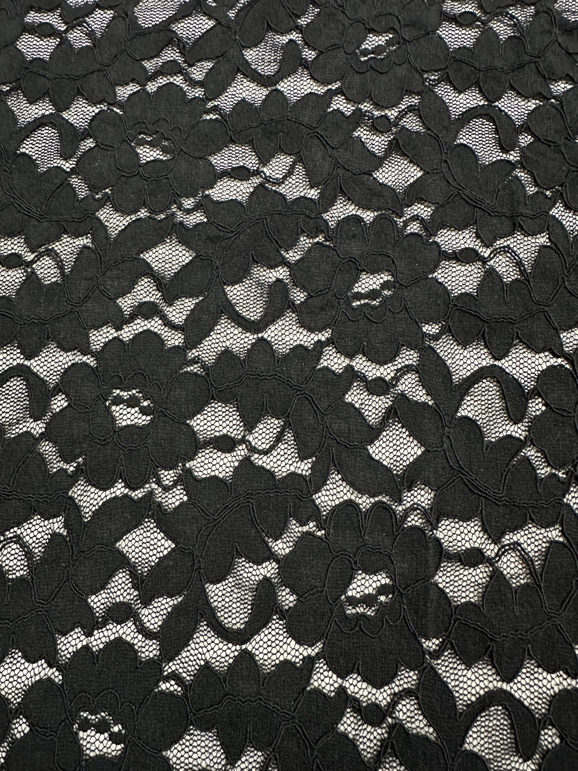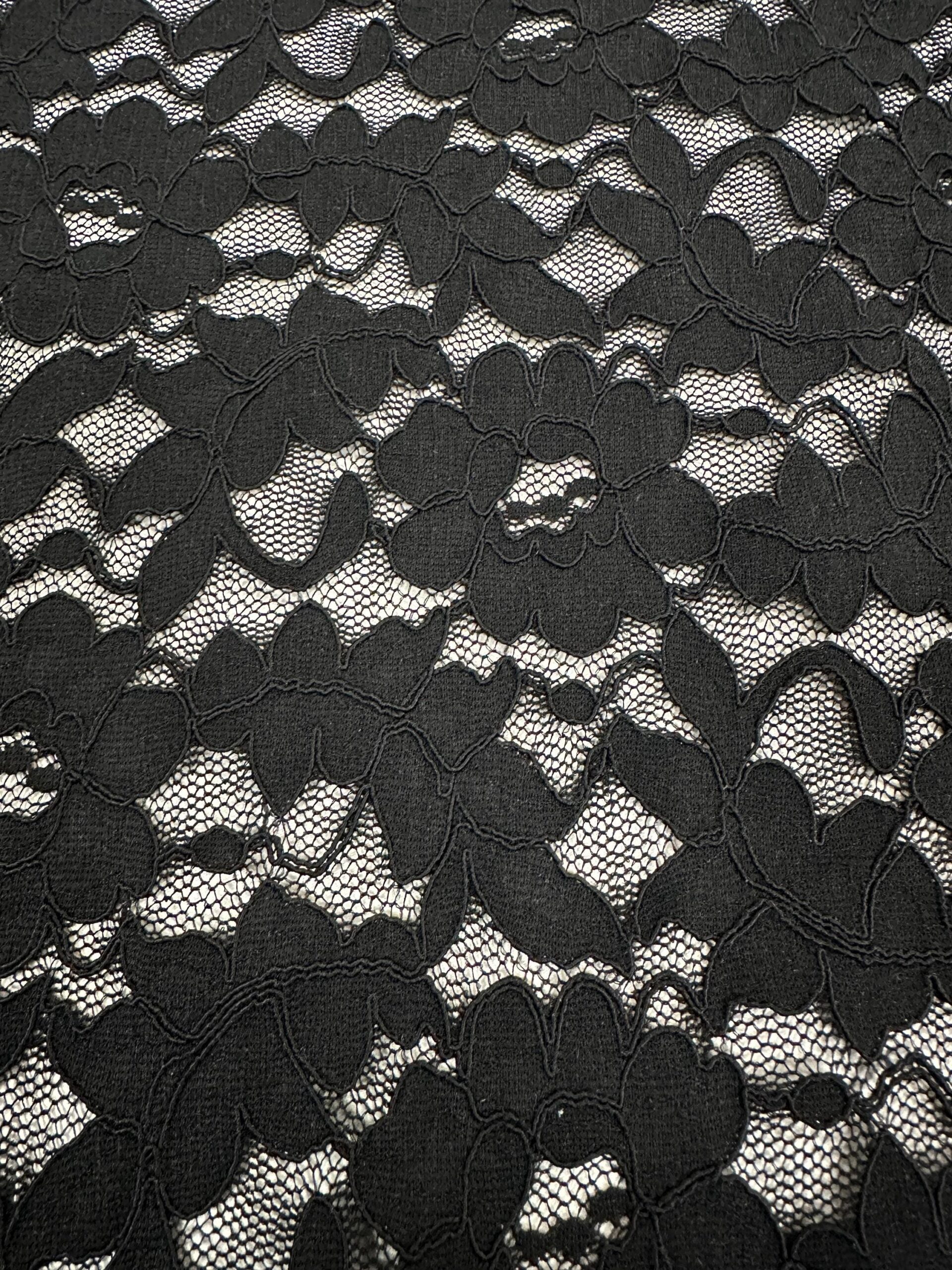 Black Floral Lace Fabric | Soft 2-Way Stretch Elegant Flower Pattern