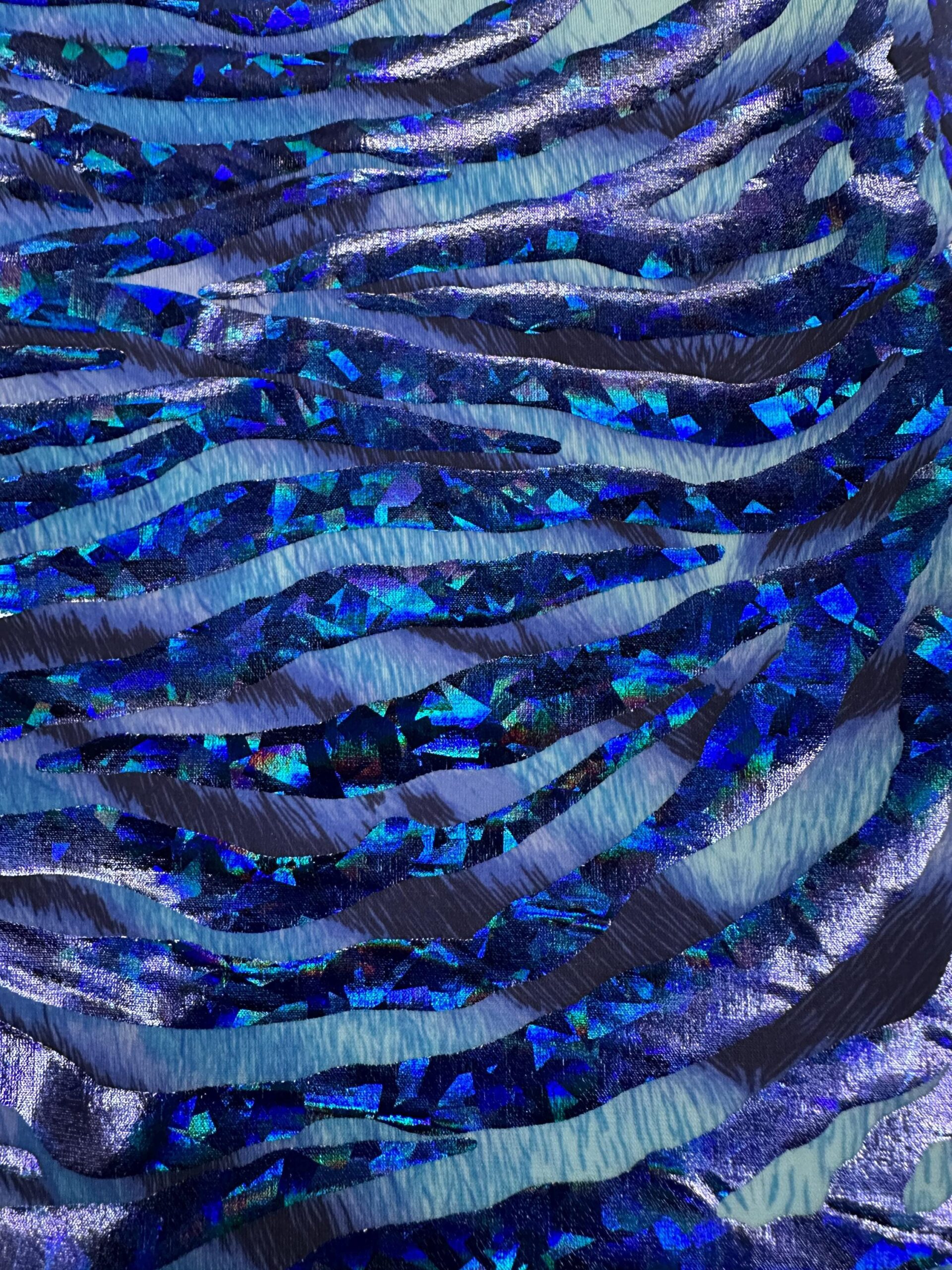 Blue Holographic Zebra Print Spandex Fabric 4-Way Stretch Dancewear