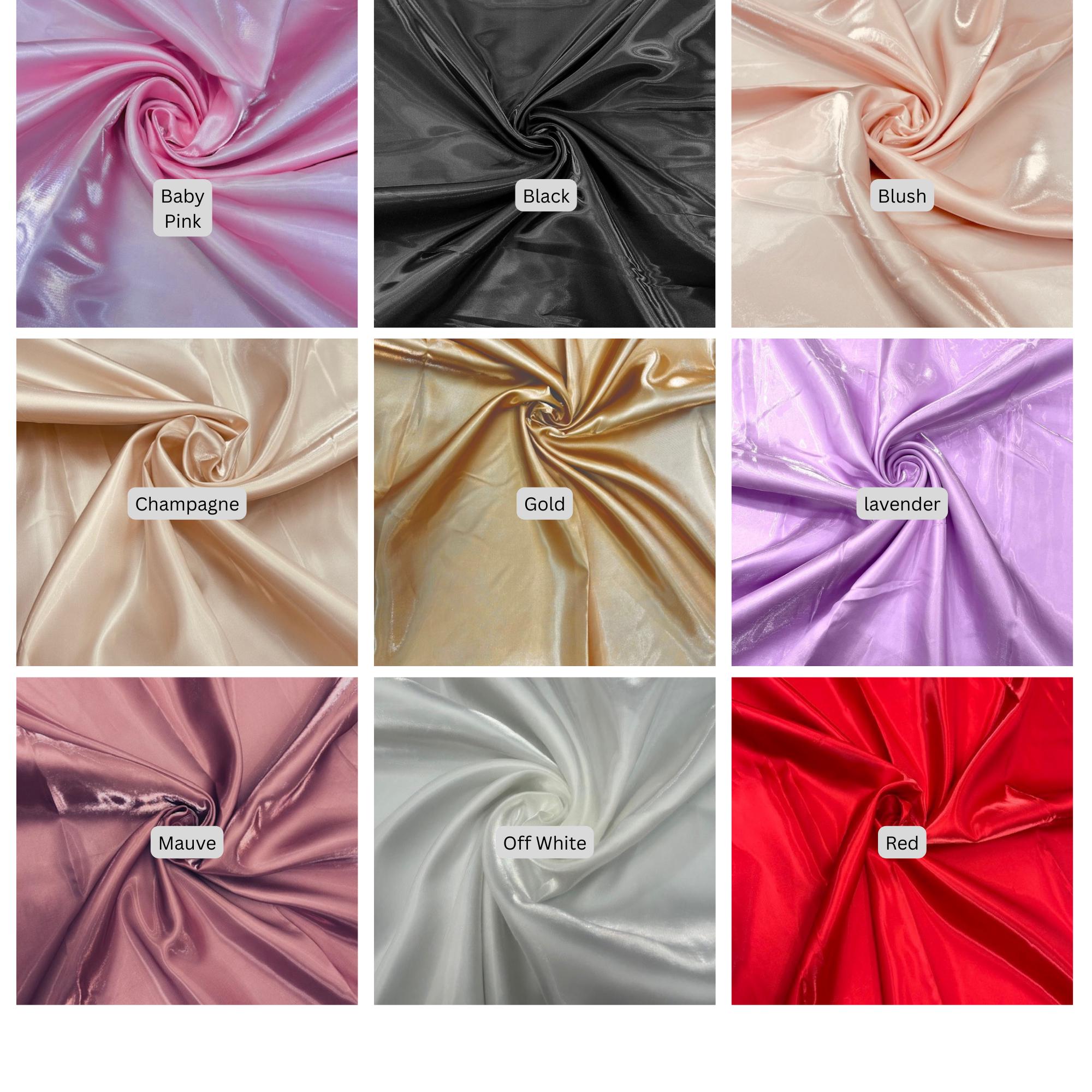 Baby Pink, Black, Blush, Champagne, Gold, Lavender, Mauve, Off White, Red, Royal Blue, Sage, Silver, White