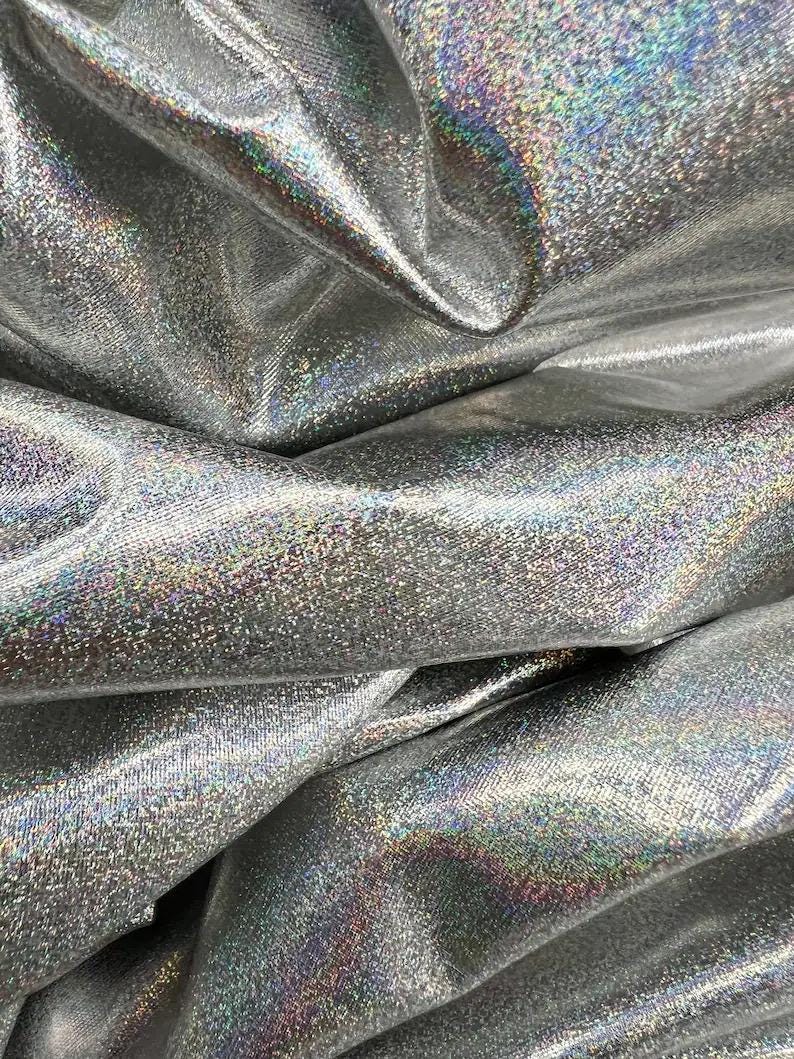 Holographic Silver Metallic Lame Spandex Fabric / 60″ Wide Dancewear