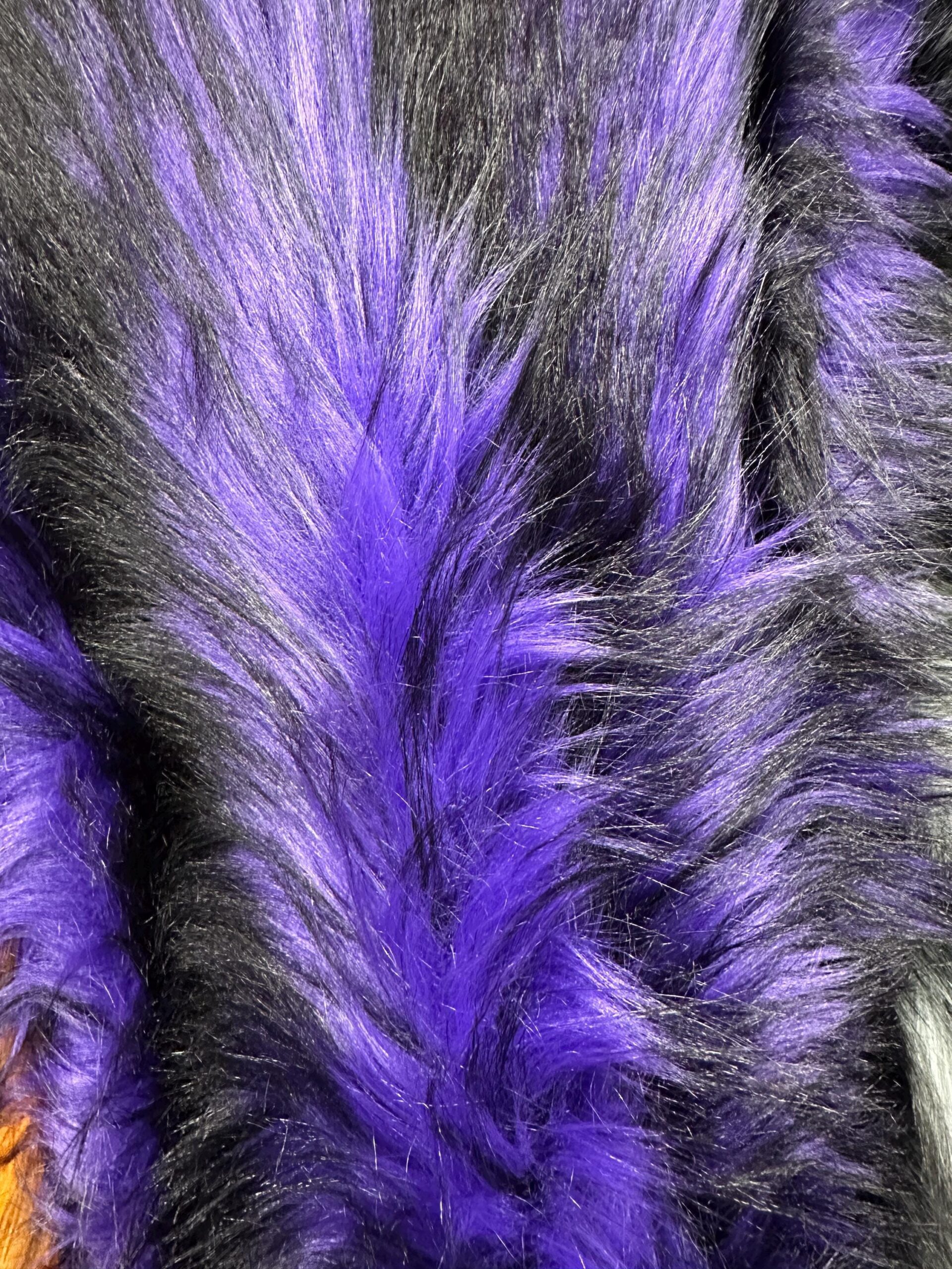 Purple & Black Long Pile Faux Fur Fabric – Two-Tone Shaggy Fake Fur