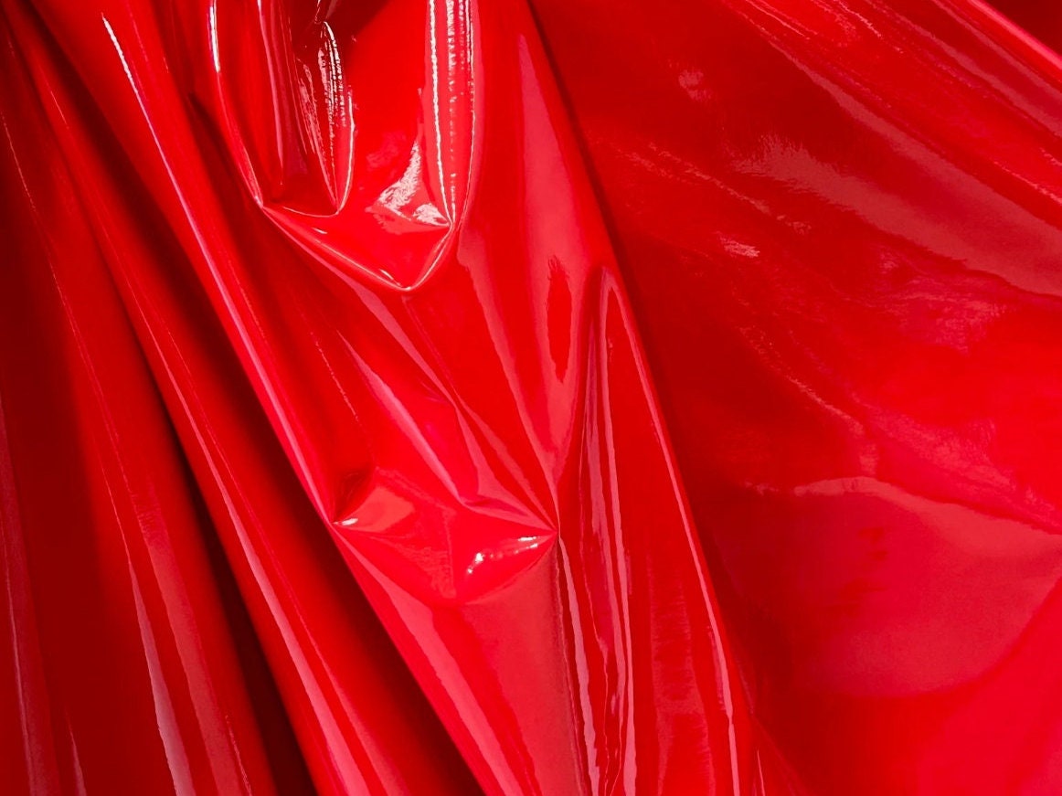 Create show-stopping pieces with this vivid red stretch vinyl fabric, designed to give the look of high-shine latex while offering comfortable flexibility. The surface features a brilliant, mirror-like gloss, while the backing has a soft knit for easy sewing and a slight 2-way stretch. Perfect for bold fashion, cosplay, stage costumes, dancewear, and eye-catching accessories.