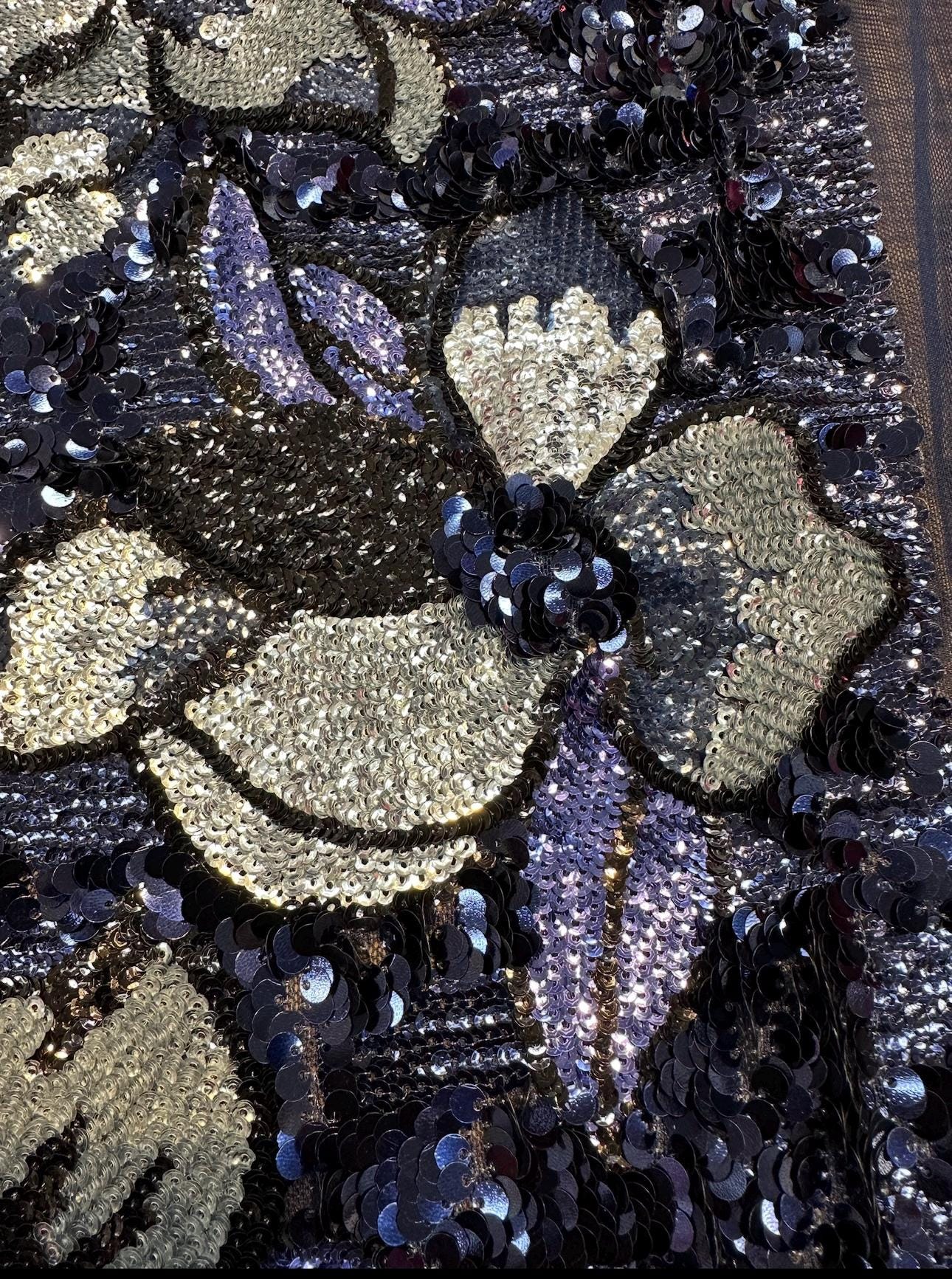 Sequin Lace Fabric – 3D Floral Embroidered Mesh Black Gold Purple Couture