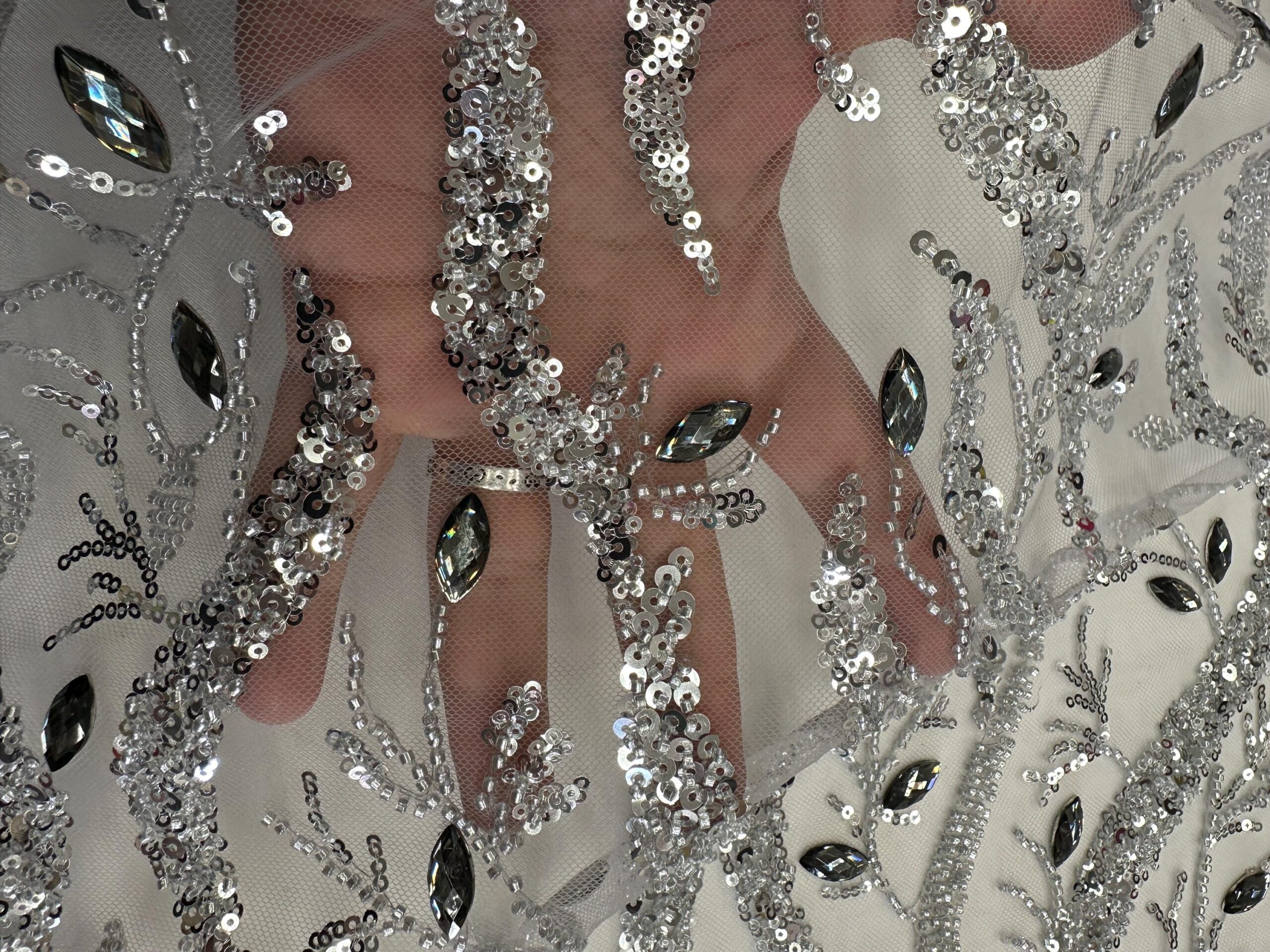 Be the first to review “Silver Beaded Lace Fabric | Embroidered Mesh, Rhinestones /Sequins” Cancel reply