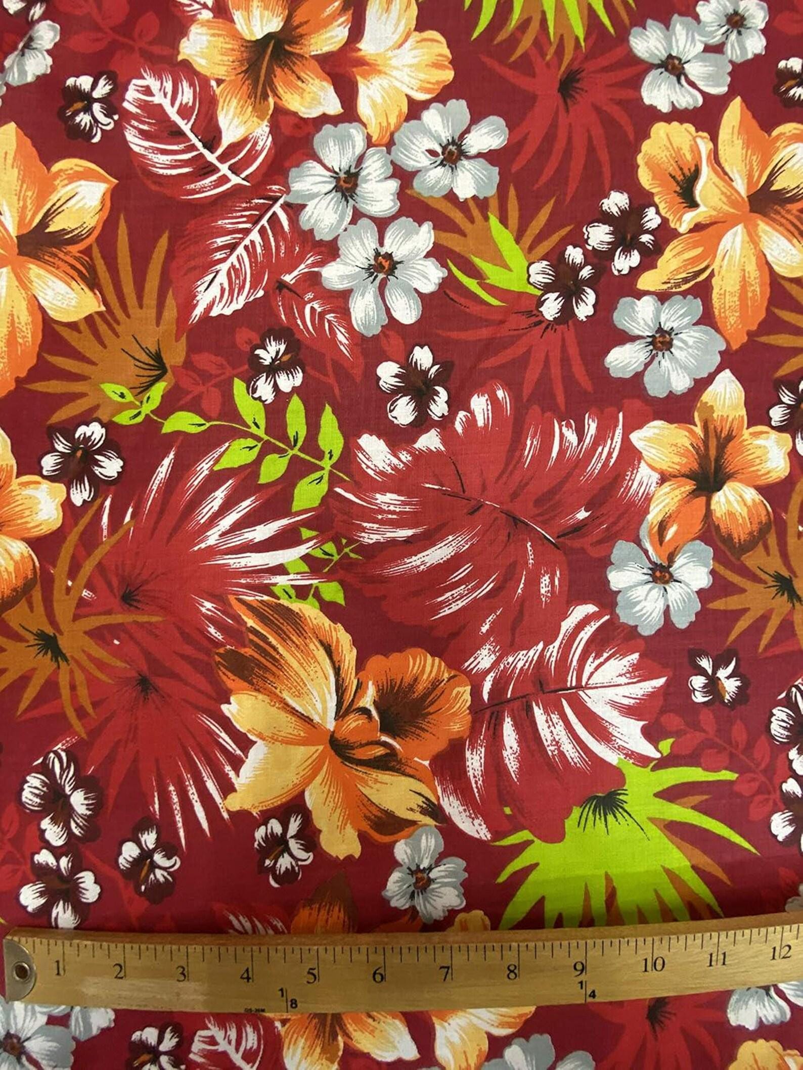 Tropical Hibiscus Cotton Fabric Red Floral Print, Hawaiian Style